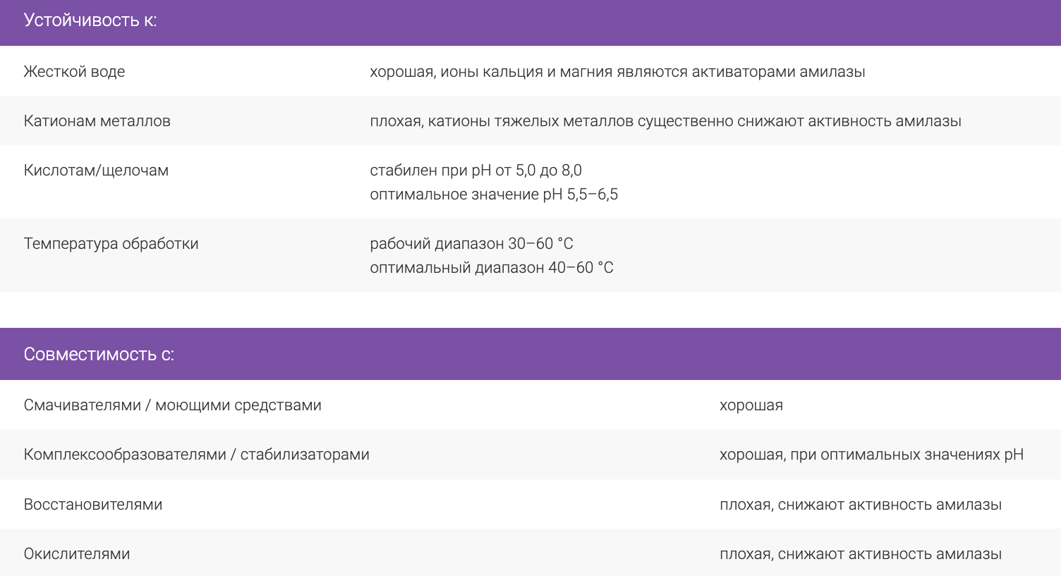 обеспечивает быстрое и полное разложение крахмальной шлихты на водорастворимые вещества;