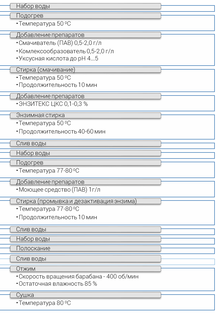 Периодический способ (джиггер, барка, стиральная машина) Биостоунинг изделий из денима и плотных тканей
